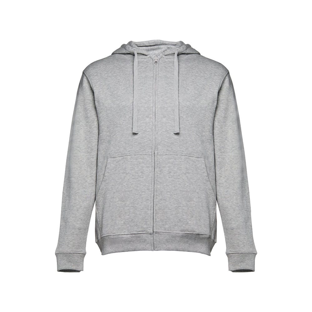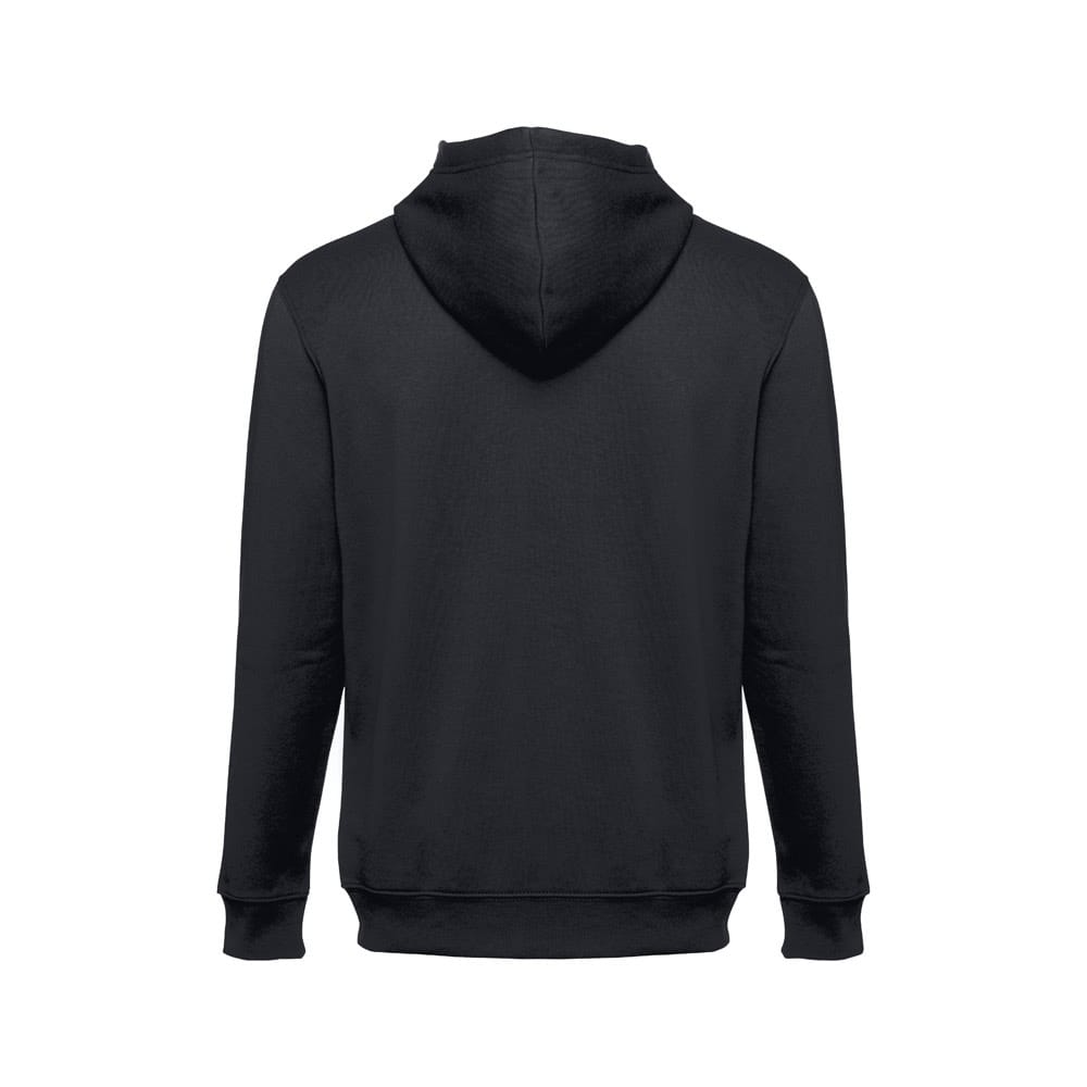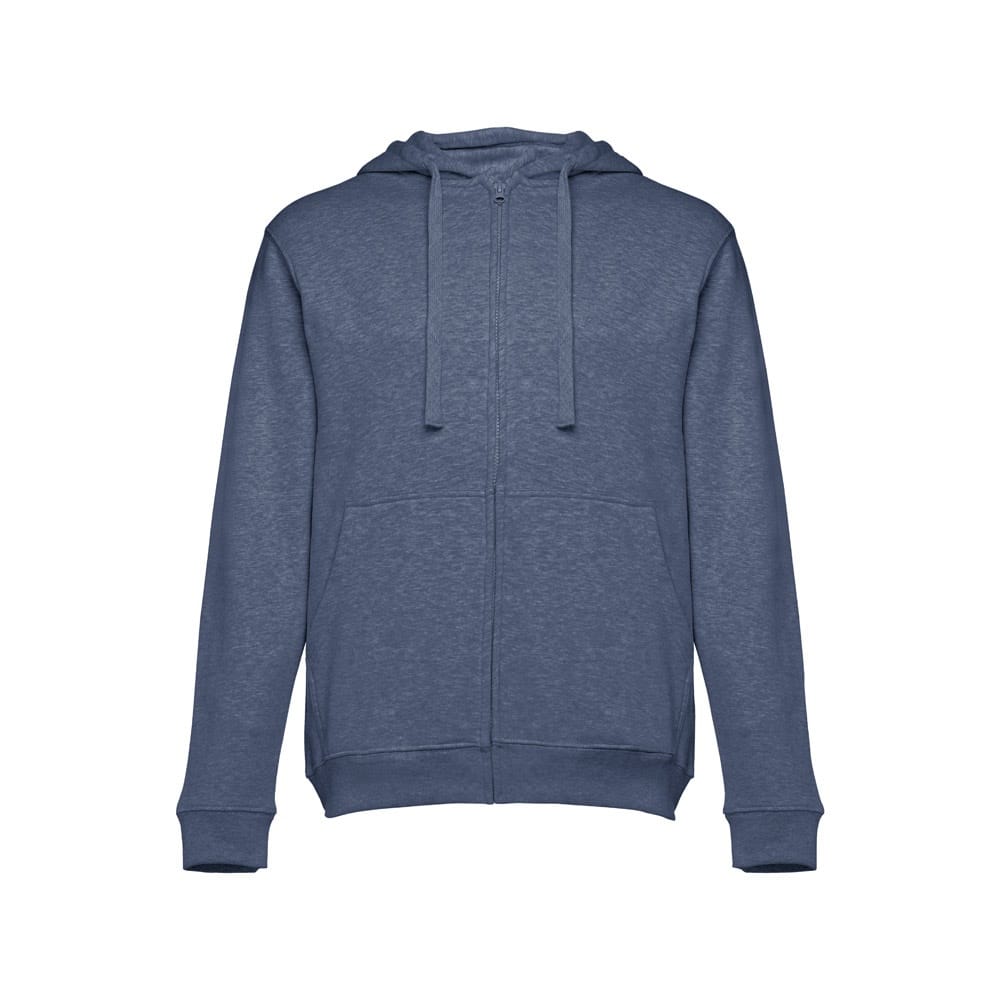 50% βαμβάκι και 50% ανδρική μπλούζα από πολυεστέρα (320 g/m²) με λαναρισμένο εσωτερικό. Η κουκούλα είναι επενδυμένη και περιέχει κλείσιμο καλωδίου χρώματος. Η μπροστινή περιοχή έχει δύο μαρσπιέ τσέπες με πλαστικό κάλυμμα. Κομμάτι με μανσέτες και κορδέλα στη μέση