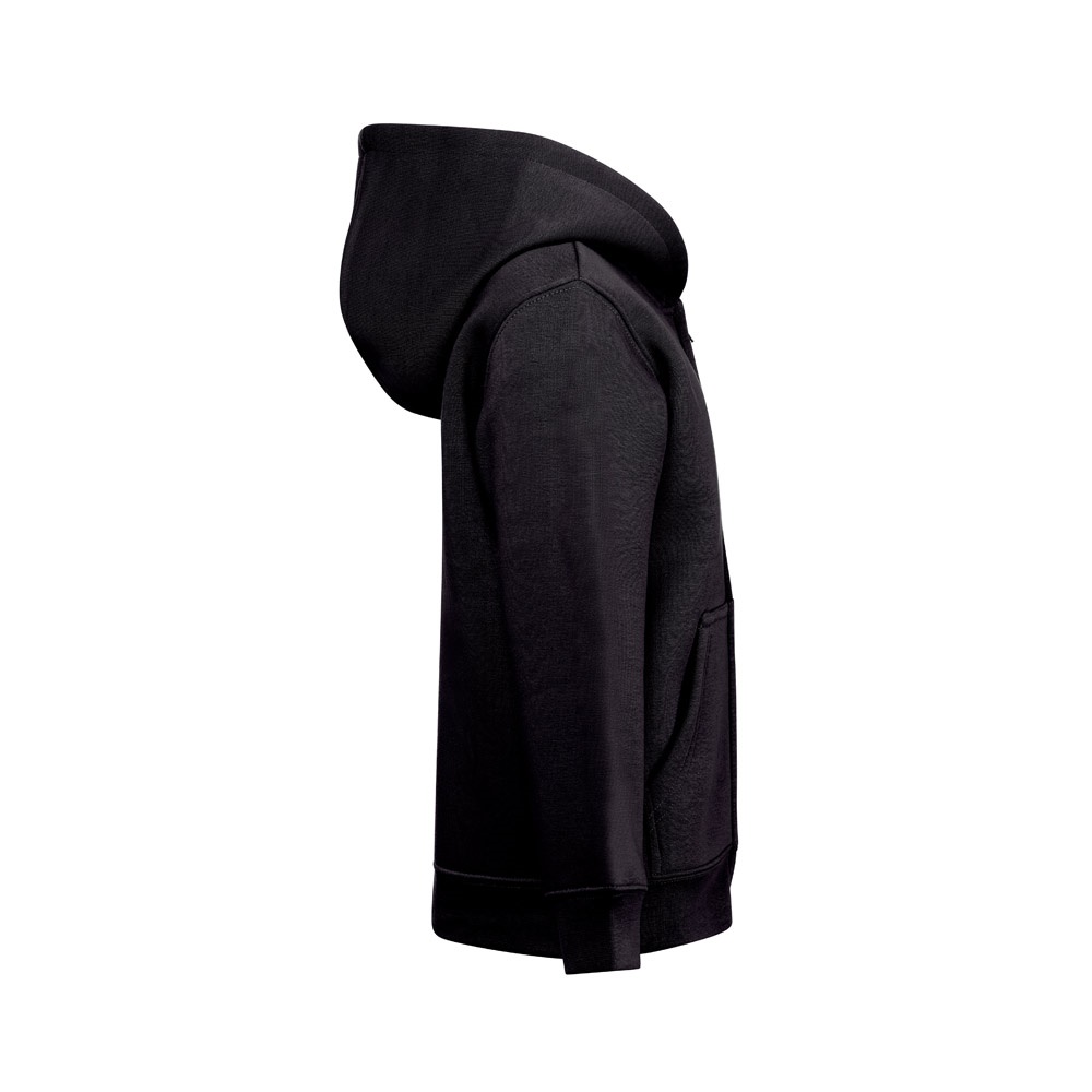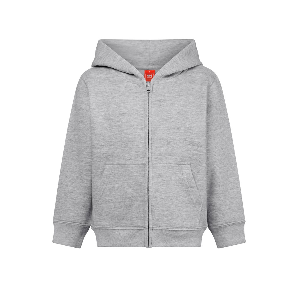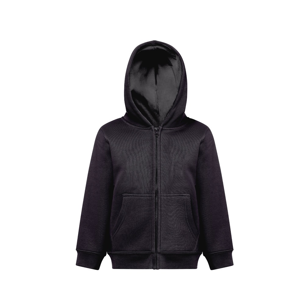 Παιδικό μπουφάν επεξεργασμένο με ένζυμα σε Αμερικα Τερρυ(50% βαμβάκι με πρακτικές βιώσιμης καλλιέργειας) και 50% ανακυκλωμένος πολυεστέρας (320 g/m²). Κουκούλα χωρίς κορδόνια περίσφιξης και επένδυση σε ζέρσεϊ στο ίδιο χρώμα με το μπουφαν, σύμφωνα με τα πρότυπα ασφαλείας της Ευρωπαϊκής Ένωσης. Περιέχει 1×1 rib μανσέτες και κάτω μέρος, 2 πλαϊνές τσέπες, φερμουάρ με συρόμενο, εξολκέα και λαναρισμένο εσωτερικό. Μέγεθος: 4, 6, 8, 10, 12