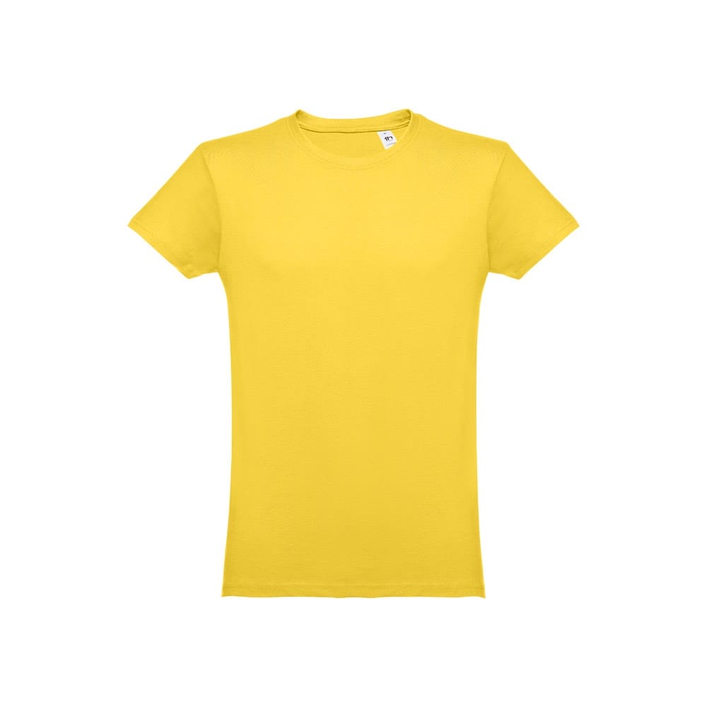 Μπλουζάκι για άνδρες με κανονική κοπή σε φανέλα 100% βαμβάκι (150 g/m²) με λαναρισμένο βαμβακερό νήμα (χρώμα 183: 90% βαμβάκι/10% βισκόζη). Περιέχει κολάρο 1×1 με κορδέλα οπλισμού και διπλή ραφή στα μανίκια και στο κάτω μέρος